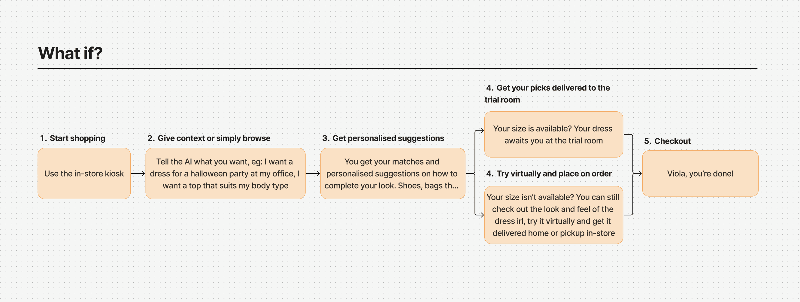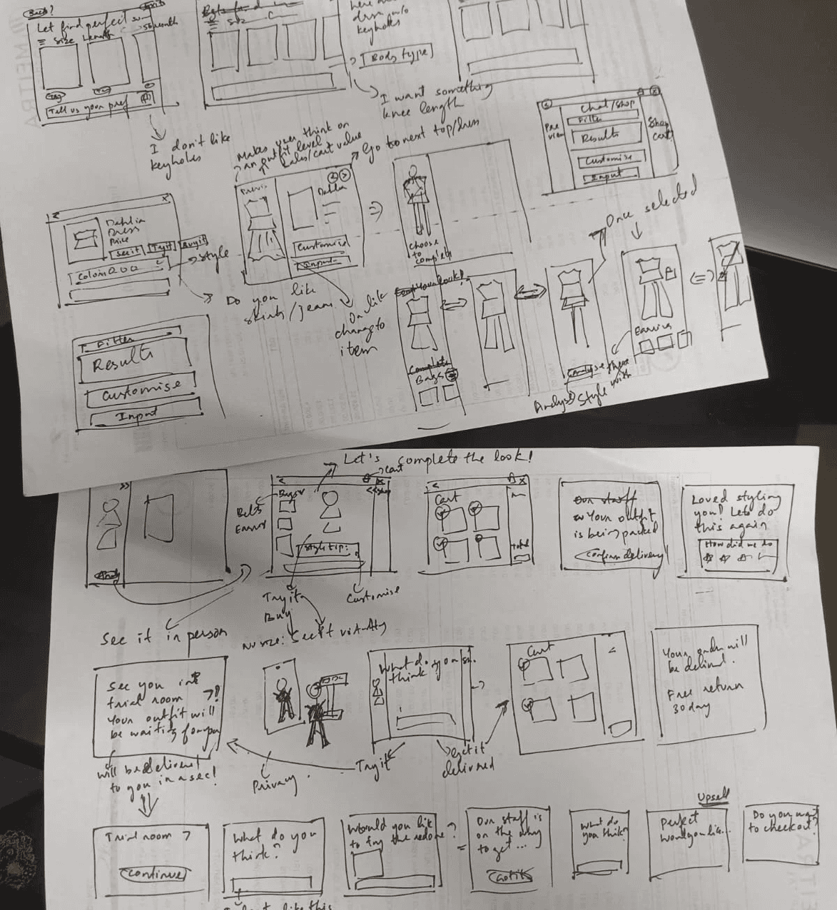 So here I am, trying to combine the best of both worlds with a self-serve smart shopping kiosk that acts as a personalized style companion. A mouthful to say, a bit ambitious in its implementation (virtual try ons, trial room delivery?) but helpful for sure probably mostly.